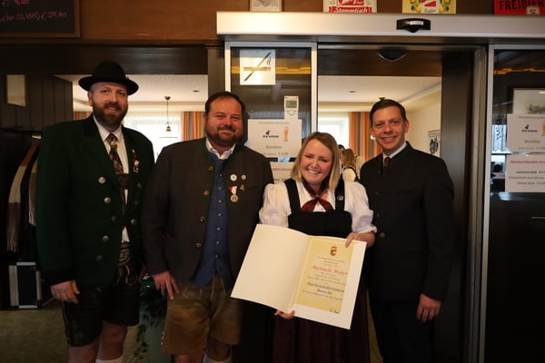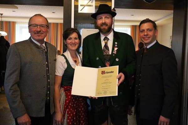 Gauobmann Erwin Eder verlieh Michaela Huber die „Marketenderinnen Brosche“ und Florian Huber wurde das „Volksmusik- Ehrenzeichen“ in Bronze verliehen. Hans Eisl und Johannes Kittl erhielten das „Ehrenzeichen Heimat und Brauchtum“ in Bronze und Josef Kittl in Silber